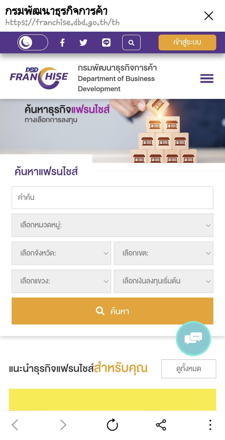 นักลงทุนและประชาชนที่สนใจลงทุนในระบบแฟรนไชส์ สามารถค้นหาธุรกิจแฟรนไชส์ในเครือข่ายของที่ผ่านการพัฒนาจากกรมฯ ซึ่งปัจจุบันมีจำนวน 545 แบรนด์ ที่พร้อมให้นักลงทุนและประชาชนที่สนใจสร้างอาชีพเลือกลงทุนได้ตามความชอบ ได้ทาง https://franchise.dbd.go.th/th หรือขอคำปรึกษาได้ที่ ส่วนส่งเสริมธุรกิจเฟรนไชส์ กองส่งเสริมและพัฒนาธุรกิจ กรมพัฒนา ธุรกิจการค้า กระทรวงพาณิชย์ สายด่วน 1570 โทรศัพท์หมายเลข 0 2547 5953 e-Mail: [email protected]