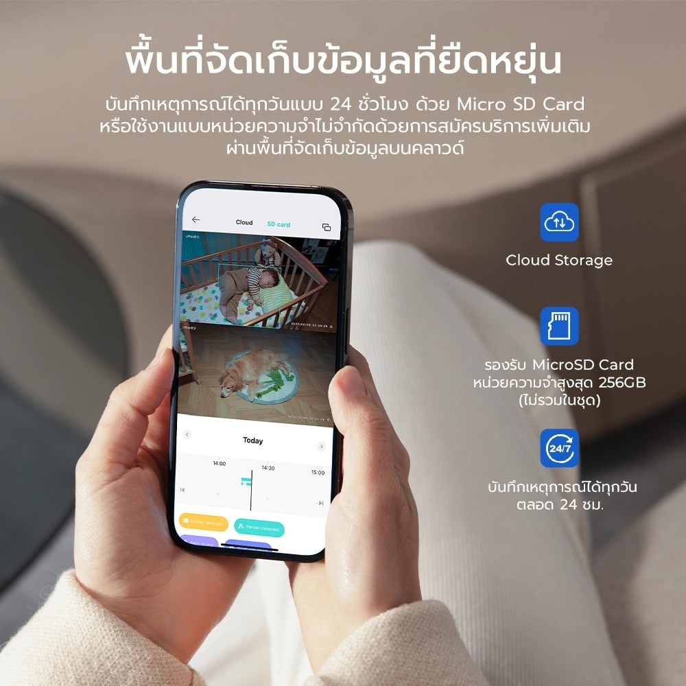 รับการแจ้งเตือนเกี่ยวกับกิจกรรมสำคัญที่ตรวจจับได้โดย C30 Dual ซึ่งการตรวจจับด้วย AI ในตัวเครื่องครอบคลุมทั้งมนุษย์ สัตว์เลี้ยง เสียงร้องของทารก ไฟ และควัน ( เวอร์ชันเบต้า ) โดยไม่จำเป็นต้องสมัครสมาชิก เนื่องจากระบบ AI จะประมวลผลข้อมูลภายในเครื่อง