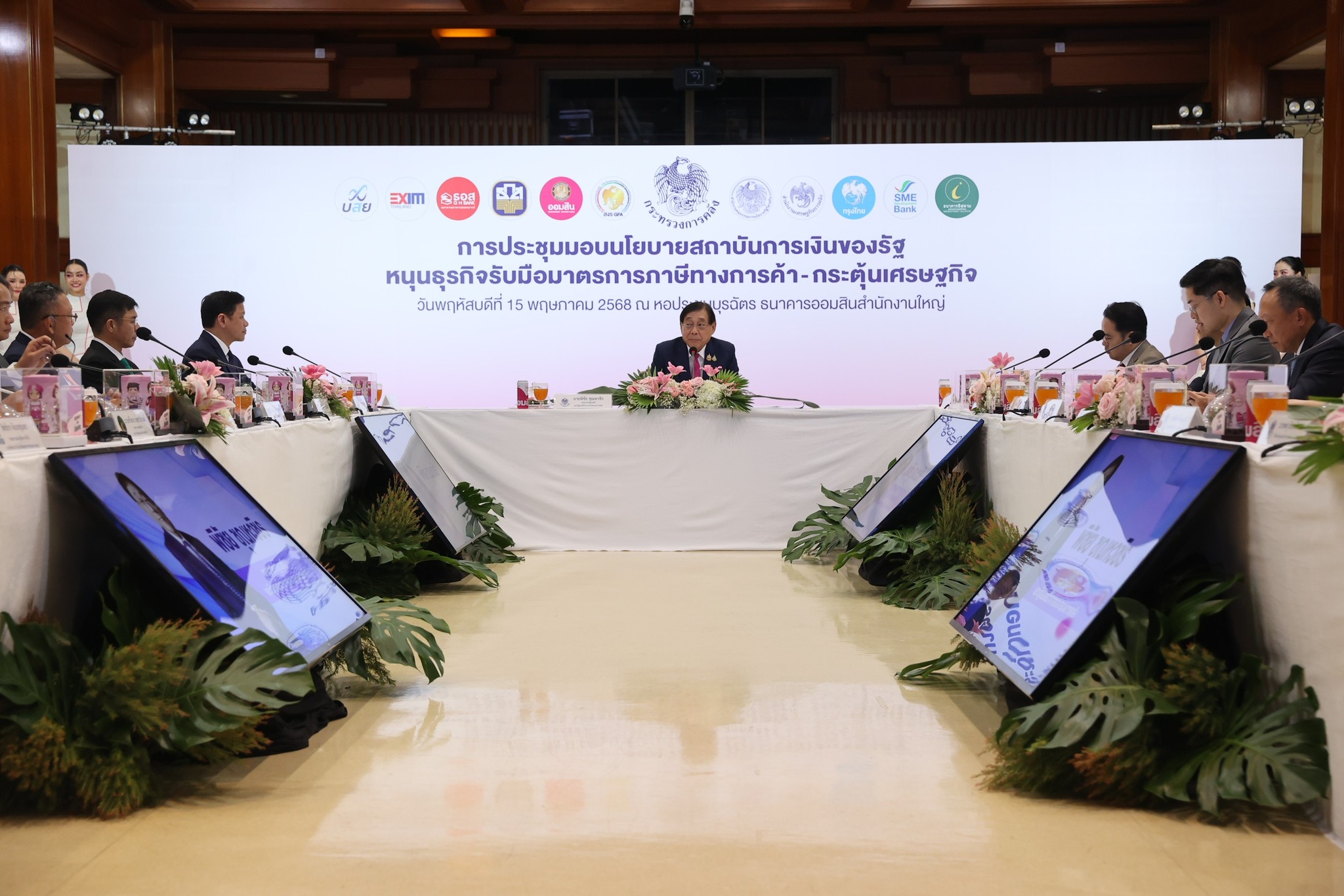 รัฐผุดมาตรการอุ้มภาคธุรกิจ สั่งแบงก์รัฐลดกำไร-ใส่งบช่วยเหลือผู้ประกอบการ SME -ลดดอกเบี้ย ตั้งเป้าช่วยธุรกิจส่งออกตลาดสหรัฐ ซัพพลายเชน ผู้ผลิตแข่งขันกับสินค้านำเข้า รับมือวิกฤติกำแพงภาษี