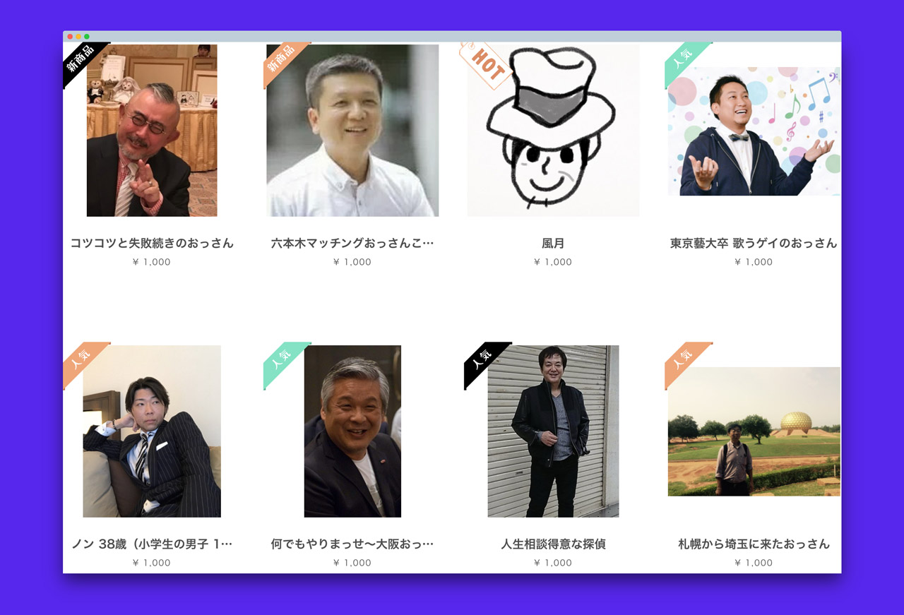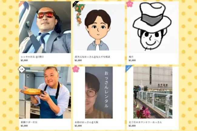 สำหรับบริการเช่าคุณลุง หลายคนอาจจะมองว่าเป็น “คนแก่” แต่แท้จริงแล้วบริการนี้กลุ่มชายวัยกลางคนอายุระหว่าง 30-60 ปี ขึ้นไป โดยเน้นไปที่บริการทางอารมณ์ สังคม และชีวิตประจำวัน ซึ่งมีค่าใช้จ่ายอยู่ที่ 1,000 เยน/ชั่วโมง หรือประมาณ 250 บาท ผ่านช่องทางเว็บไซต์ที่มีโปรไฟล์คุณลุงที่มีคุณลักษณะเฉพาะให้เลือก ซึ่งสัดส่วนผู้เลือกใช้บริการจะเป็นผู้หญิง 70% ที่อยากจะปรึกษา หรือเป็นที่คอยรับฟังปัญหา ระบายความในใจ ปัญหาชีวิต ให้กับคุณลุงได้ฟัง