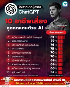ฟังจากปากผู้สร้าง Chat GPT 10 อาชีพเสี่ยงถูกทดแทนด้วย AI