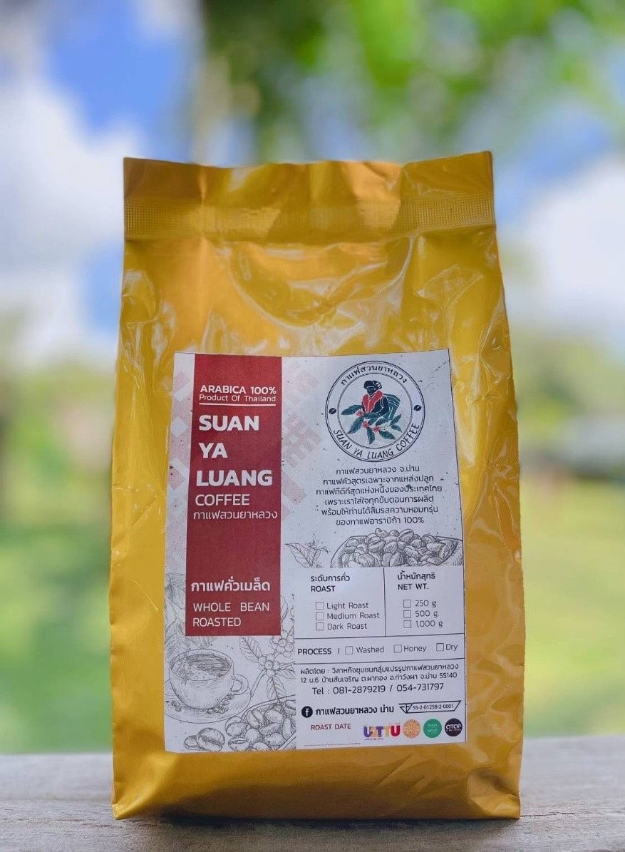กาแฟดอยสวนยาหลวงน่านเป็นกาแฟพันธุ์อะราบิกาจากแหล่งปลูกบนพื้นที่ดอยสวนยาหลวง อำเภอท่าวังผา จังหวัดน่าน พื้นที่ต้นน้ำซึ่งสูงจากระดับน้ำทะเล 1,000 – 1,500 เมตร มีอากาศเย็นตลอดปี ดินอุดมสมบูรณ์เป็นแหล่งสะสมของแร่ธาตุ ส่งผลให้ต้นกาแฟเจริญเติบโตได้ดี ประกอบกับมีกระบวนการบ่มและคั่วในระยะเวลาที่เหมาะสม ทำให้ได้เมล็ดกาแฟที่มีกลิ่นหอมคล้ายกลิ่นช็อกโกแลต กลิ่นถั่ว และกลิ่นผลไม้ ให้รสชาติเข้ม กลมกล่อม และมีความเป็นสมุนไพรรสเผ็ดซ่า เป็นเอกลักษณ์ของกาแฟดอยสวนยาหลวงน่านที่โดดเด่นไม่เหมือนใคร เป็นที่จดจำและชื่นชอบของผู้บริโภค