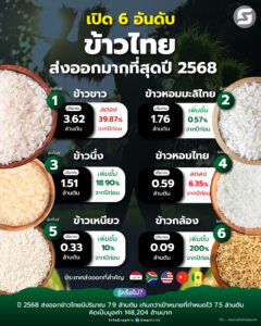 เปิด 6 อันดับ ‘ข้าวไทย’ ส่งออกมากที่สุดปี 2568