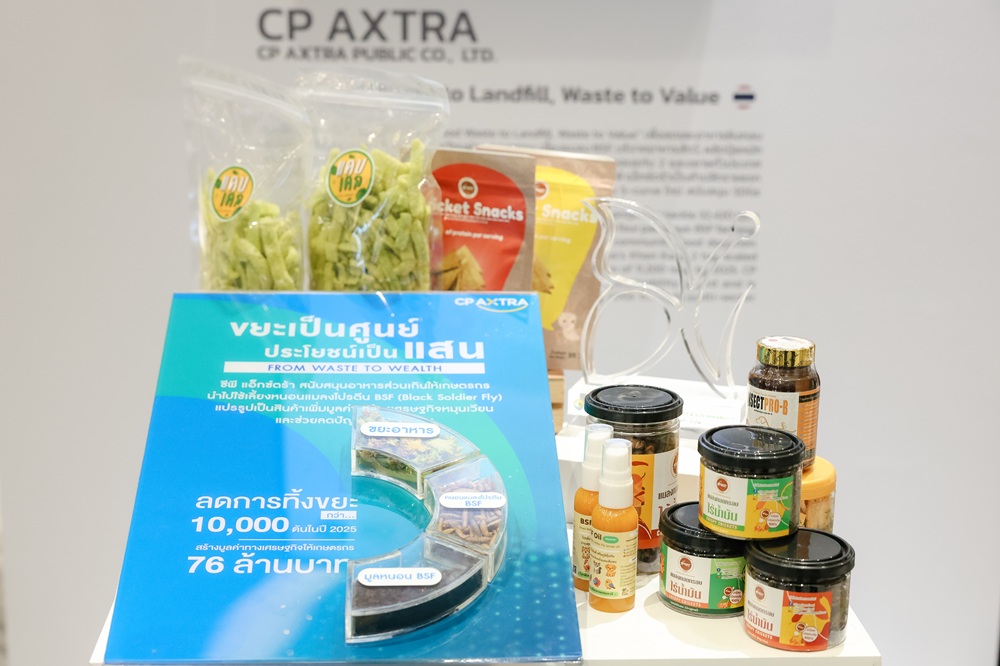 นางศิริพร เดชสิงห์ ประธานเจ้าหน้าที่บริหารสายงานความยั่งยืนและสื่อสารองค์กร กล่าวว่า “ซีพี แอ็กซ์ตร้า มุ่งมั่นที่จะลดการสูญเสีย เพื่อให้ทุกกระบวนการสามารถกลับมาเป็นคุณค่าใหม่ได้ นวัตกรรมนี้คือโซลูชันที่ครอบคลุมตั้งแต่ต้นน้ำถึงปลายน้ำ โดยเริ่มต้นจากการมอบอาหารส่วนเกินในธุรกิจส่งต่อให้เกษตรกรเพื่อใช้เลี้ยงแมลงโปรตีน Black Soldier Fly (BSF) ซึ่งหนอนแมลงโปรตีน BSF มีโปรตีนสูงถึง 50% ซึ่งมีกรดอะมีโนจำเป็นที่มีประโยชน์ต่อสัตว์ รวมถึงไขมันดี เช่น โอเมก้า 3, 6, 9 เพื่อนำไปเลี้ยงจิ้งหรีด ต่อยอดเป็นผลิตภัณฑ์ ช่วยลดต้นทุน เพิ่มรายได้ให้เกษตรกรได้อย่างยั่งยืน ขณะเดียวกัน มูลจากแมลงโปรตีน BSF ยังถูกนำไปเป็นปุ๋ยอินทรีย์คุณภาพสูง สำหรับปลูกผักออร์แกนิกอย่าง ผักเคล ซึ่งต่อยอดเป็นผลิตภัณฑ์ ‘แคบเคล’ สร้างมูลค่าเพิ่มทางเศรษฐกิจได้อย่างชัดเจน ที่สำคัญ แมลงโปรตีน BSF เป็นการจัดการขยะอาหารด้วยวิธีชีวภาพที่ดีที่สุด และเป็นการกำจัดอาหารได้เร็วกว่าการทำปุ๋ยถึง 45 เท่า แสดงให้เห็นว่าการเปลี่ยนแปลงขยะให้เป็นประโยชน์นั้นสามารถเกิดขึ้นได้จริง และสอดคล้องกับเป้าหมายการพัฒนาที่ยั่งยืน SDGs ข้อที่ 12 และการสร้างเศรษฐกิจหมุนเวียนของประเทศไทย”