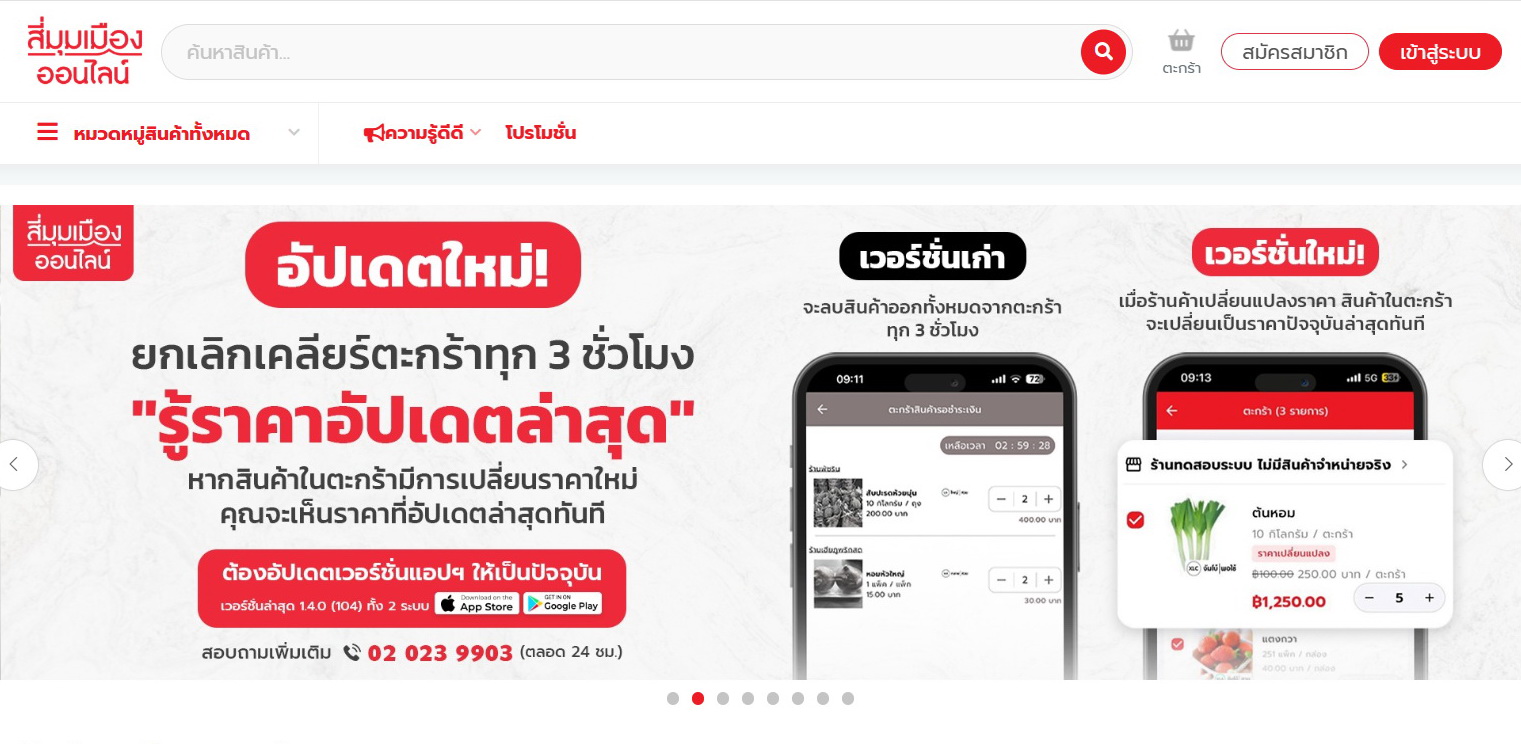 แน่นอนว่าด้วยยุคสมัยที่เปลี่ยนแปลงไป เทคโนโลยีเข้ามาอำนวยความสะดวกให้กับผู้คนมากขึ้น ‘สี่มุมเมือง’ ในยุค 5G ไม่ได้มีแค่การยื่นเงินสดแล้วรับของไป แต่มีการปรับตัวเข้าสู่ Digital Transformation อย่างเต็มรูปแบบ ตั้งแต่การเปิดตัวแพลตฟอร์ม “สี่มุมเมืองออนไลน์” ที่ช่วยให้คนซื้อสามารถสั่งของผ่านแอปพลิเคชันได้โดยไม่ต้องเดินทางมาเอง