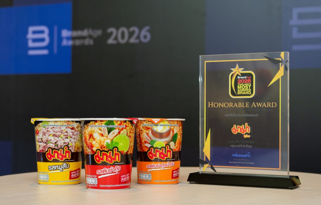 ในยุคที่ผู้บริโภคต้องคิดก่อนจ่ายทุกบาท แบรนด์อาหารที่ยังรักษาความเชื่อมั่นได้จริง กลายเป็นสินทรัพย์ที่มีค่ามากกว่าส่วนแบ่งตลาด “มาม่า” ยังคงยืนหนึ่งในใจคนไทย จากผลสำรวจ Thailand’s Most Admired Brand 2026 โดย BrandAge ครองตำแหน่งแบรนด์บะหมี่กึ่งสำเร็จรูปที่น่าเชื่อถือมากที่สุด 26 ปีต่อเนื่อง ในหมวดบะหมี่กึ่งสำเร็จรูปจาก นิตยสาร BrandAge ด้วยสัดส่วนความเชื่อมั่น 33.63% สะท้อนฐานผู้บริโภคที่แข็งแรง มีความเชื่อมั่นในแบรนด์ แม้กำลังซื้อชะลอตัว