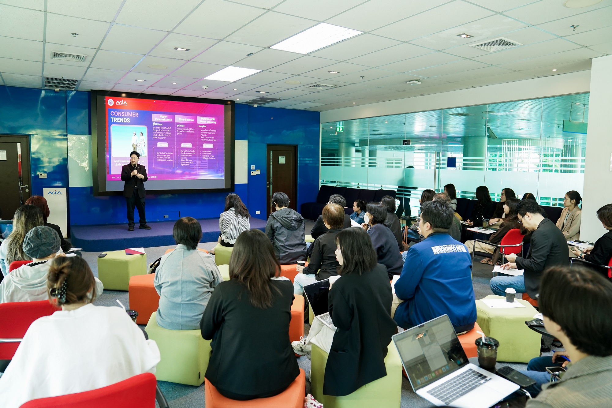 ทั้งนี้ NIA ให้ความสำคัญกับการปลูกฝังชุดความคิดและทักษะนวัตกรให้กับกำลังคนรุ่นใหม่ ทั้งในระดับเยาวชนและธุรกิจสตาร์ตอัป ผ่านโปรแกรม STEAM4INNOVATOR และ Startup Thailand League ตลอดจนหลักสูตรการฝึกอบรมที่จะช่วยยกระดับธุรกิจด้วยนวัตกรรมของ สถาบันวิทยาการนวัตกรรม (NIA Academy) และสำหรับองค์กรธุรกิจและผู้ประกอบการเอสเอ็มอี การเสริมสร้างขีดความสามารถในการปรับตัว ไปสู่การเป็น ‘องค์กรนวัตกรรม’ ผ่านการจัดการนวัตกรรมที่เป็นระบบ จะช่วยยกระดับขีดความสามารถในการแข่งขัน ของผู้ประกอบการไทย ซึ่ง NIA ได้นำกระบวนการ Consultative Assessment มาช่วยสะท้อนให้