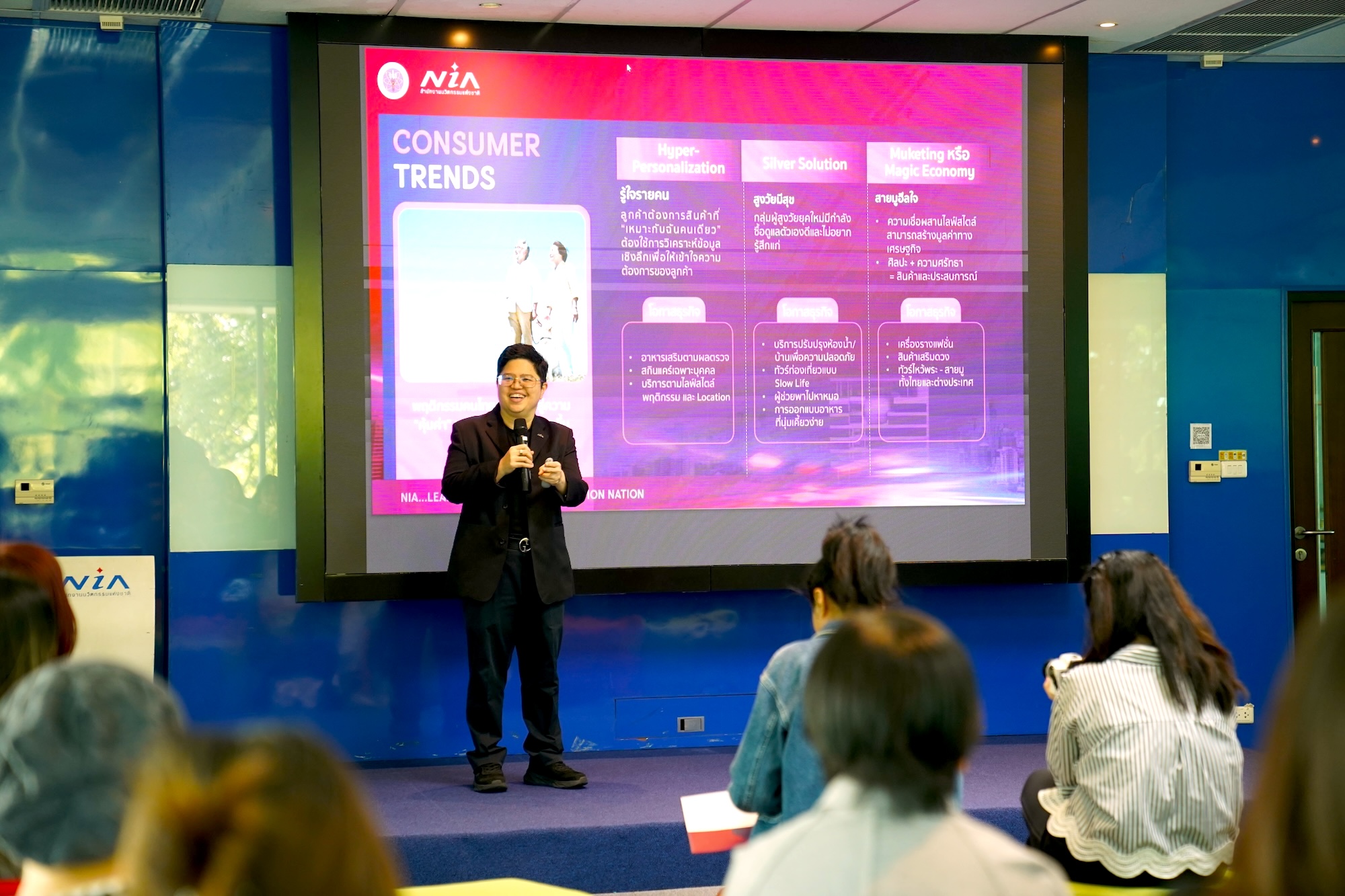 ในการนำนวัตกรรมไปสู่ตลาดและการขยายธุรกิจ ซึ่งปีนี้ NIA มุ่งเน้นการต่อยอดและขยายผลกลไกการร่วมลงทุน เช่น Corporate Co-funding และ กลไกการร่วมลงทุนจากภาครัฐ (NIA venture) โดยดำเนินการร่วมกับบริษัทร่วมลงทุน (VC/CVC)