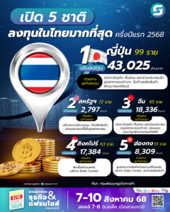 เปิด 5 ชาติลงทุนในไทยมากที่สุด ครึ่งปีแรก 2568
