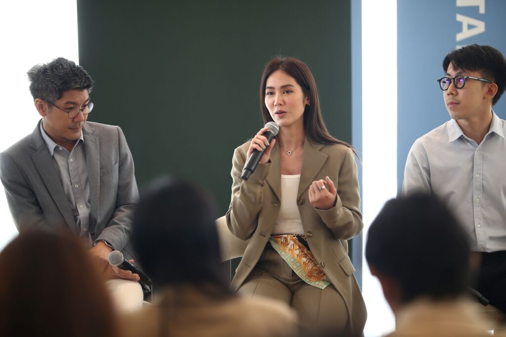 จากภาพ: คุณพีร์ โปษยานนท์ (ที่ 2 จากซ้าย) ทีม Product Design ร่วมกับคุณอิทธิกร วงศ์ศรีศุภกุล (ที่ 3 จากซ้าย) คุณภัสสรวง ร่มรื่น (ขวา) ทีม Sustainable จากแสนสิริ และคุณมะนาว ศรศิลป์ มณีวรรณ์ (ซ้าย) KOL รุ่นใหม่สาย Healthy ร่วมพูดคุยในงาน Sansiri Sustainable Design: สร้างสุขที่ยั่งยืน