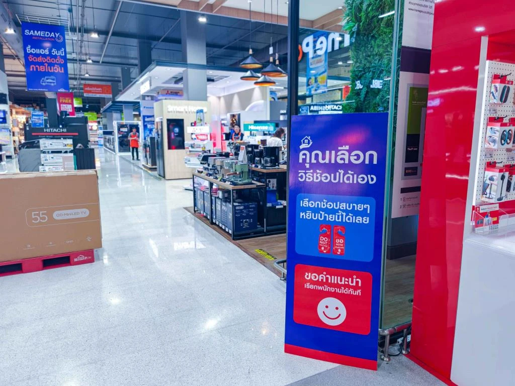 ทำไม ‘โฮมโปร’ ถึงกล้าทำแบบนี้ นี่คือเรื่องที่ถูกคิดมาเป็นอย่างดีแล้ว เพราะผู้บริโภคปัจจุบันพวกเขามีการศึกษาข้อมูลจากช่องทางออนไลน์มาก่อนที่จะเข้าร้าน และบางส่วนอยากให้ใช้เวลาเลือกสินค้าด้วยตัวเองมากขึ้น ดังนั้น แบรนด์จึงอยากสร้างประสบการณ์ให้ความเคารพกับลูกค้าที่ให้ร้านเป็น Safe Space ที่ลูกค้ามาแล้วรู้สึกถึงความสบายใจ จึงลดบทบาทจาก Push Selling และขยับสู่ Permission-Based Selling ให้ลูกค้าเป็นผู้กำหนดว่า “เมื่อไหร่” ที่ต้องการความช่วยเหลือ