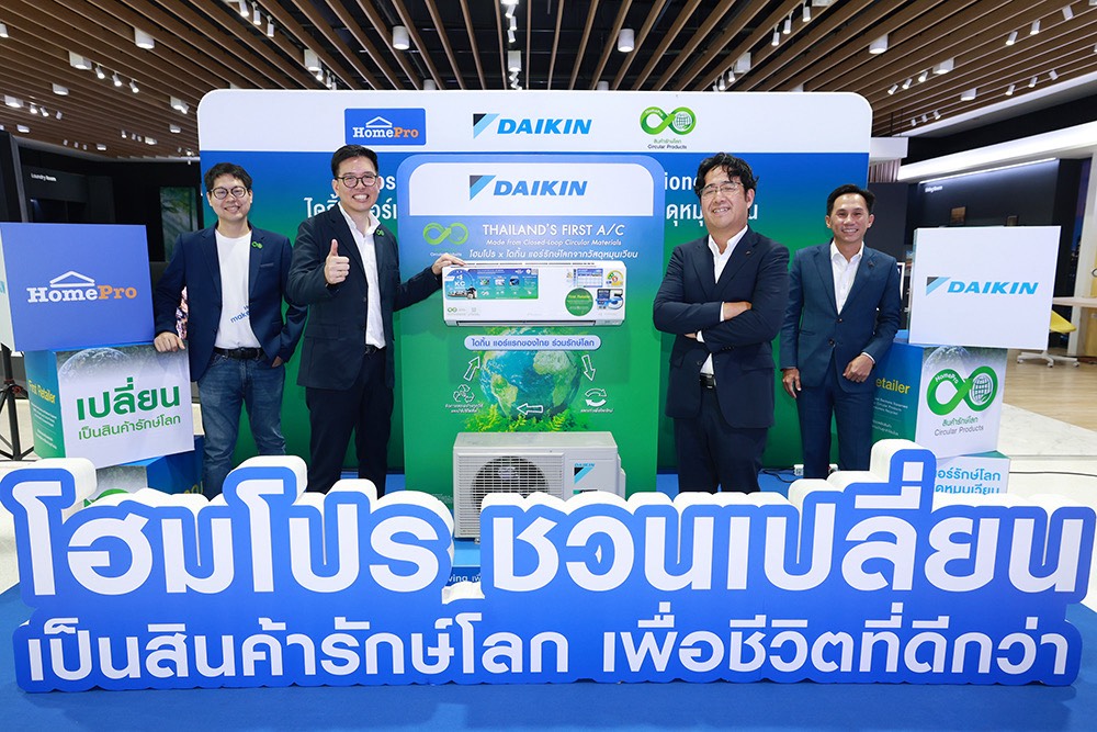 ไดกิ้น ผู้นำด้านระบบปรับอากาศระดับโลก และ โฮมโปร ผู้นำด้าน Home Solution & Living Experience ประกาศความสำเร็จครั้งสำคัญในการร่วมกันยกระดับอุตสาหกรรมเครื่องใช้ไฟฟ้าไทย เปิดตัว “เครื่องปรับอากาศรักษ์โลก” (Circular Air Conditioner) ครั้งแรกในประเทศไทย ภายใต้โมเดล Closed Loop Circular Product เปลี่ยนขยะจากโครงการ “แลกเก่าเพื่อโลกใหม่”