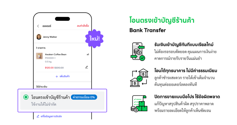 หมดปัญหาร้านค้าต้องรอรับเงินด้วยฟีเจอร์ “โอนตรงเข้าบัญชีร้านค้า” ช่วยให้ร้านค้ารับเงินได้เร็วขึ้น ไม่ต้องรอรอบการจ่ายเงินเหมือนระบบเดิม และยังรองรับการชำระผ่านแอปธนาคารทุกธนาคาร บัตรเครดิต/บัตรเดบิต หรือ E-Wallet ได้โดยตรง ตอบโจทย์ทั้งความสะดวกและปลอดภัยในการชำระเงินของลูกค้า ช่วยร้านค้าปิดการขายได้รวดเร็วและปลอดภัย ขจัดปัญหาการรอลูกค้าส่งสลิปโอนเงินยืนยันที่อาจล่าช้าหรือผิดพลาดได้ เพิ่มสภาพคล่องทางการเงินและยกระดับประสิทธิภาพในการบริหารจัดการออเดอร์ให้ร้านค้าได้มากขึ้น
