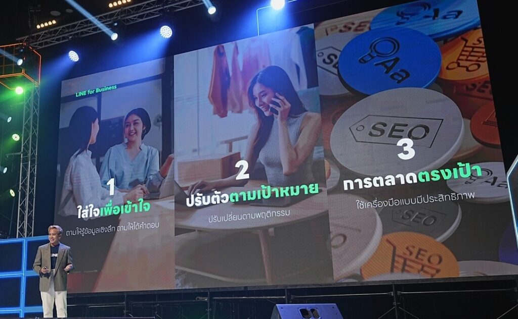 ภายในงาน LINE ยังได้แนะแนวทางการเข้าถึงลูกค้าให้ถูกกลุ่มเป้าหมาย คลายปัญหาคาใจ SME ไทยด้วยโซลูชันปั้นการตลาดแบบตรงเป้า ไม่ว่าจะเป็น
