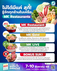 MK Restaurants ไม่ได้มีแค่ร้านสุกี้ MK เท่านั้น แต่ยังมีร้านอาหารหลากหลายประเภทในเครืออีกมากมาย