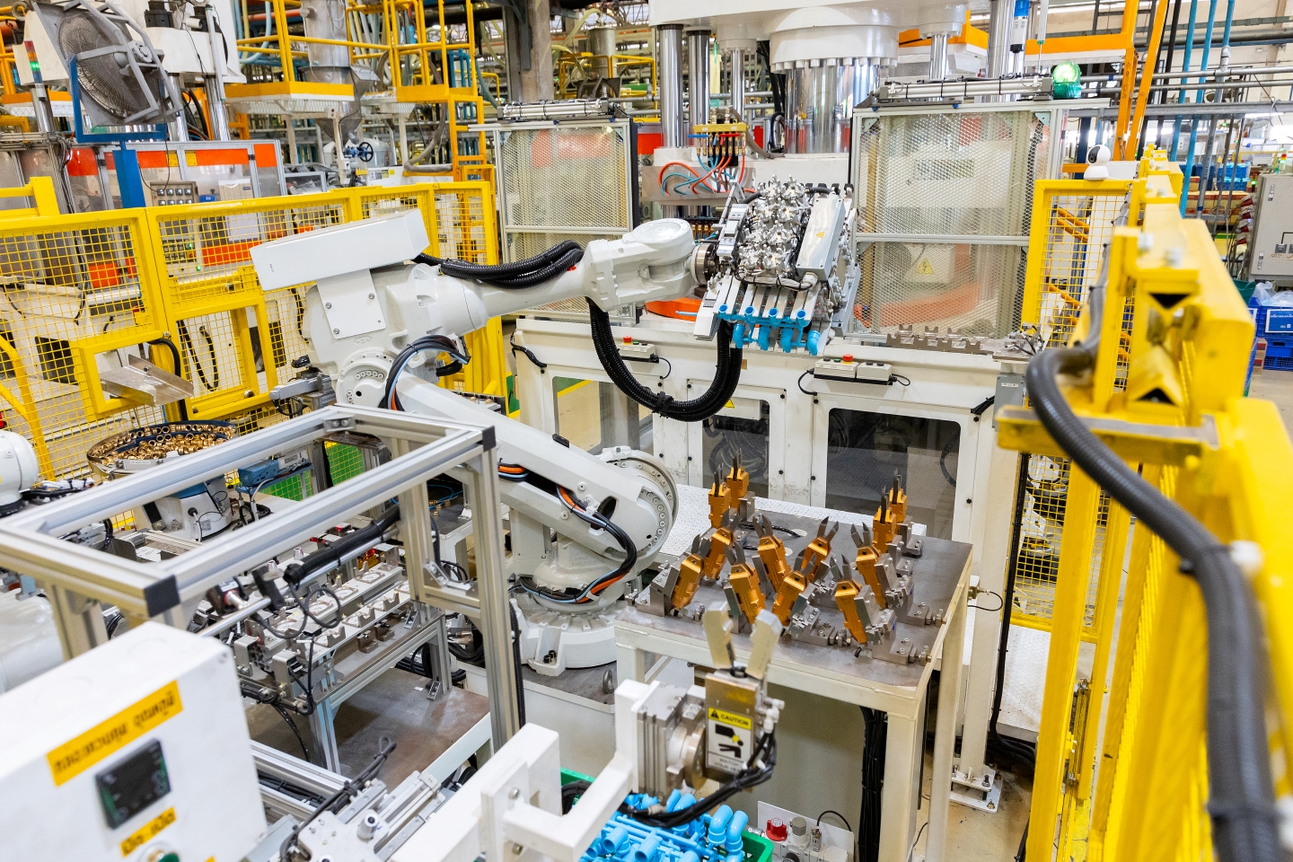 - การใช้หุ่นยนต์และ AI เช่น เอสซีจี ซีเมนต์แอนด์กรีนโซลูชันส์ ใช้หุ่นยนต์บรรจุปูนซีเมนต์และลำเลียงไปยังคลังสินค้า และใช้ระบบจัดเก็บและเบิกจ่ายสินค้าอัตโนมัติ (AS/RS Warehouse System) ช่วยจัดสินค้าไปยังรถขนส่ง รวมทั้งร่วมกับพาร์ทเนอร์ พัฒนารถบรรทุกไฟฟ้าขนส่งในเหมือง (EV Mining Truck) แบบไร้คนขับเป็นรายแรกในไทย เอสซีจี สมาร์ทลีฟวิง ใช้ระบบอัตโนมัติผลิตกระเบื้องและครอบหลังคา และแผ่นฝ้าผนังสมาร์ทบอร์ด ทำให้ได้สินค้าคุณภาพมาตรฐาน ลดค่าใช้จ่ายจากของเสียในกระบวนการผลิต และลดต้นทุนบริหารจัดการ นอกจากนี้ ได้เริ่มใช้ AI ช่วยลดขั้นตอนออกแบบและพัฒนาสินค้าใหม่ เอสซีจี เดคคอร์ ใช้ระบบอัตโนมัติเคลื่อนย้ายชิ้นงานกระเบื้องและสุขภัณฑ์ในกระบวนการผลิตและบรรจุ รวมทั้งใช้ AI ช่วยออกแบบสินค้า จำลองกระบวนการก่อนผลิตจริง ตรวจสอบคุณภาพ รวมถึงบริหารคลังสินค้า และ เอสซีจีซี ใช้หุ่นยนต์บริหารจัดการโรงงาน อาทิ โรงงานนวพลาสติกอุตสาหกรรมที่ผลิตท่อและข้อต่อ PVC รวมถึงผลิตภัณฑ์สำเร็จรูปจาก PVC มีสัดส่วนการใช้หุ่นยนต์ (Robot Density) เทียบเท่าระดับ Best in Class ของโลก และใช้เทคโนโลยีดิจิทัลและ AI เพื่อลดระยะเวลาในการพัฒนาพอลิเมอร์