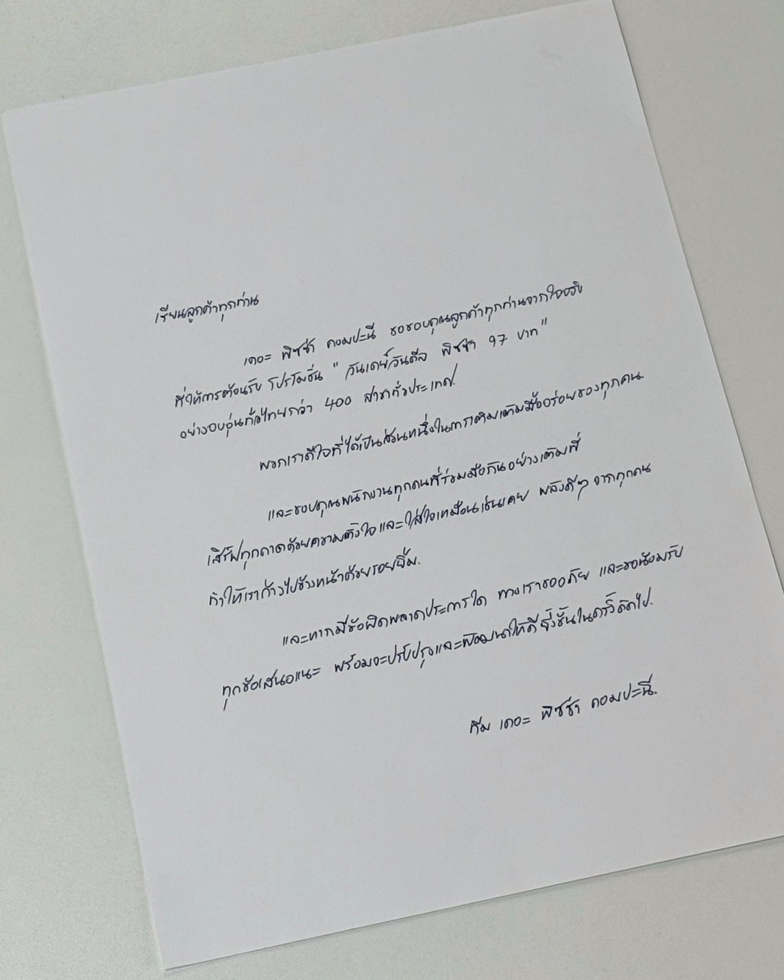 ข้อความขอบคุณของ The Pizza Company