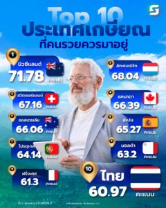 สำหรับประเทศไทยถูกจัดเข้ามาอยู่ในอันดับ 10 โดยมีจุดเด่นในเรื่องของความสวยงามทางธรรมชาติ วัฒนธรรมที่ดีงาม และค่าครองชีพที่ไม่สูง จึงดึงดูดให้กลุ่มคนเกษียณเข้ามาใช้ชีวิต